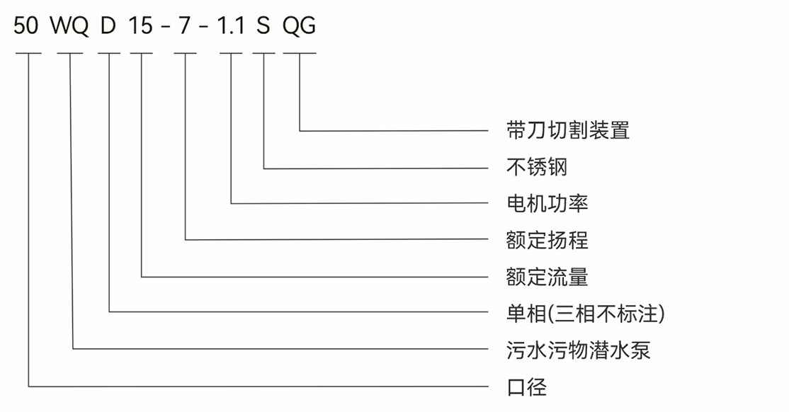 | 1 | 50WQ(D)15-7-1.1SQG | 15 | 7 | 1.1 | 220/380 | 50 | 2860/2900 | 341 | 132 | 238 | 180 | 493 | 103 | Φ50 | Φ110 | 4-Φ14 | Φ140 |